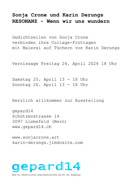 Kommende Ausstellung mit Karin Derungs im “gepard14” (Bern)