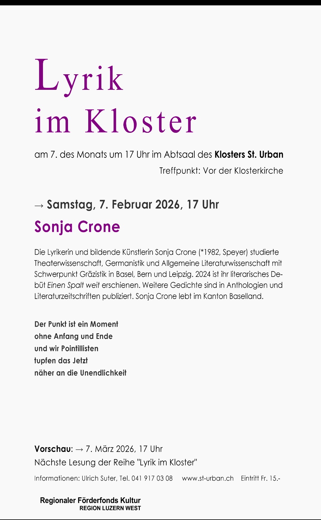 07.02.26 Lesung im Kloster St. Urban 17 Uhr